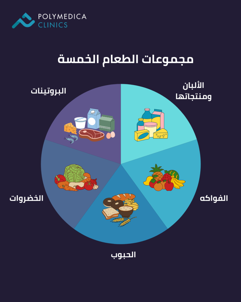 تتجمع هذه المغذيات في خمس مجموعات غذائية أساسية تشكل وجبات متوازنة: